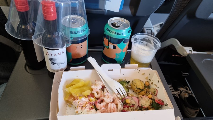 Dagens flyg till Las Palmas med räksallad. Riktigt trevlig i mitt tycke, och ett klart uppsving från senast jag flög plus då det serverades grönsallad med fröer i en box. Inget tjafs om antalet drycker heller, och nya Mikkellern smakar bra. Så skapar man nöjda kunder!