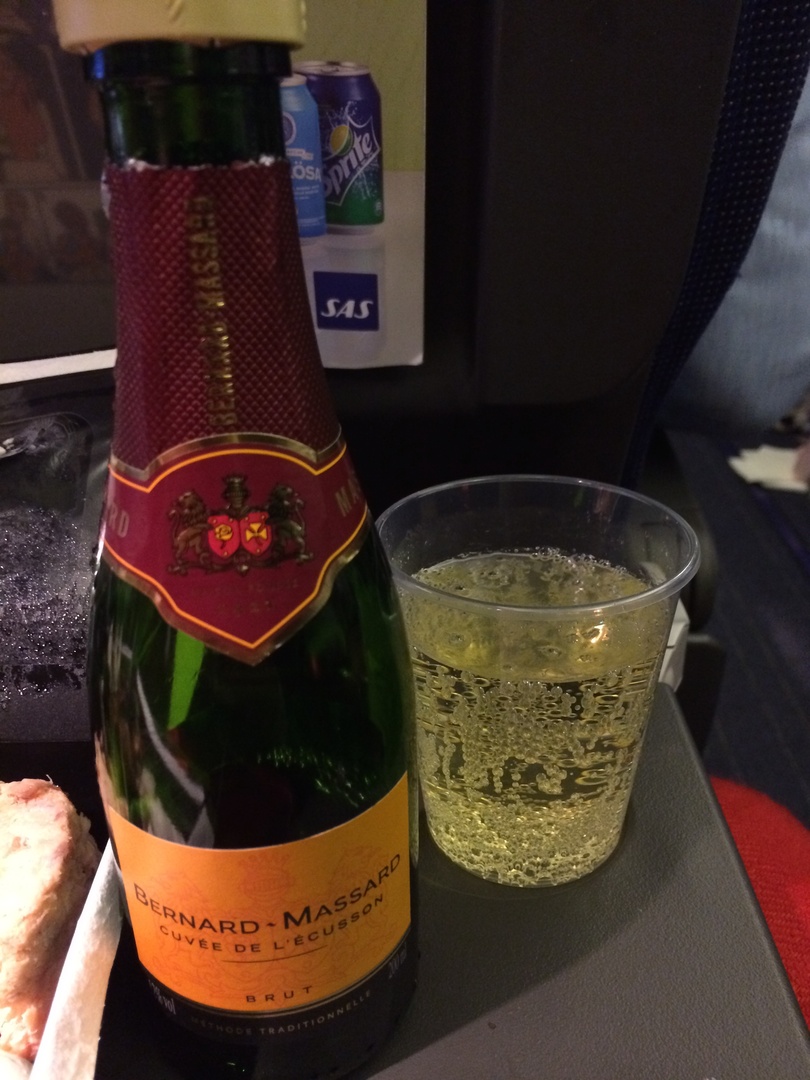 Mousserende serveret i plastglas - jeg så dog der var rigtige glas på en af de andre vogne...