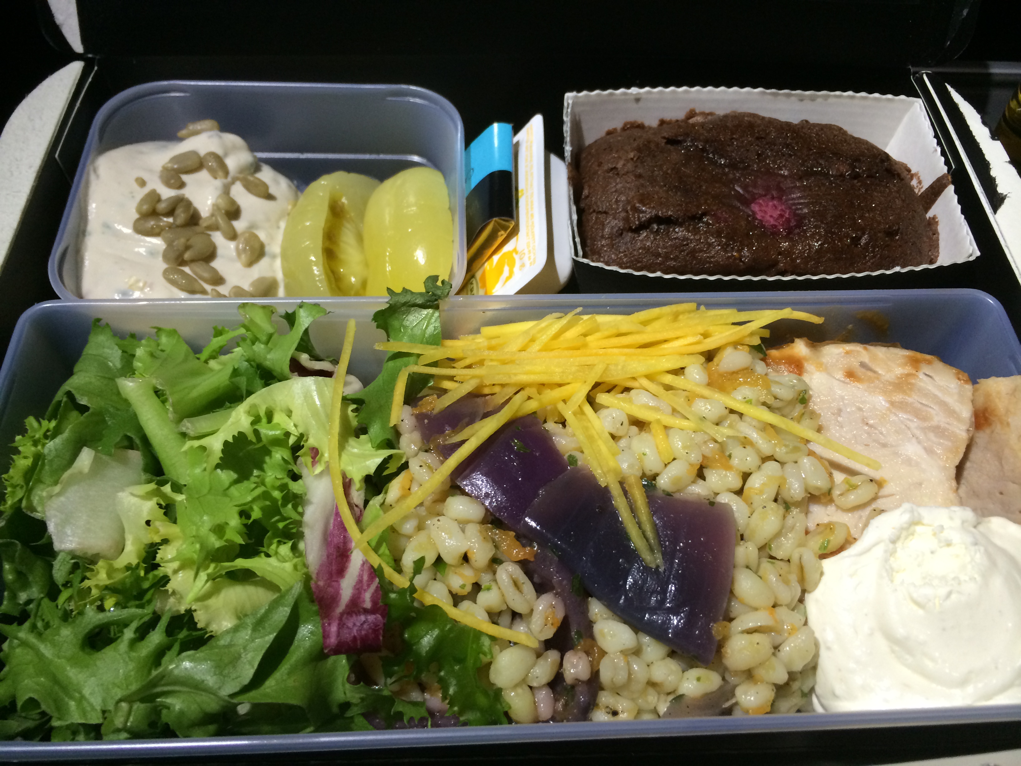 Helgens flygning Aten-Stockholm i SAS+ bjöd på det största lågvattenmärket hittills: sur förrättssallad som legat i värme för länge och blivit mjuk, själva huvudrätten var mjuk, smaklös industritärnad potatis blandad med burktonfisk till en oförlåten sörja. Inte ens salt eller peppar hade vågat lägga till! Sorgligt på en nästan 4h lång flygning längst fram i kabinen. Det här var första gången jag blev riktigt besviken på kvällslådan, hittills har de annars hållt bra kvalitet.