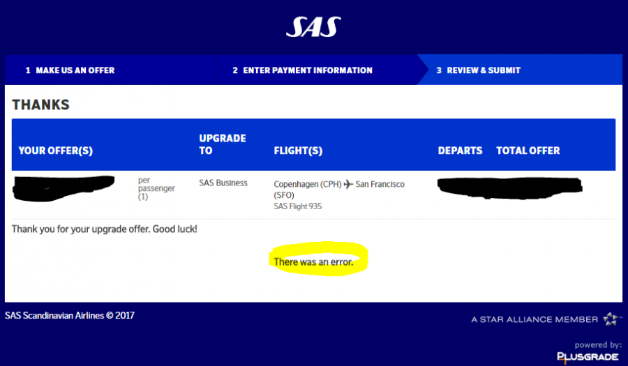 Tänkte lägga till lite nyttig information om denna upgrade. Verkar som om 3 personer totalt fått igenom en plusgrade på denna flight.