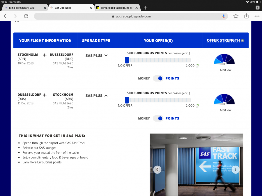 Plusgrade | SAS börjar med budgivning på uppgraderingar