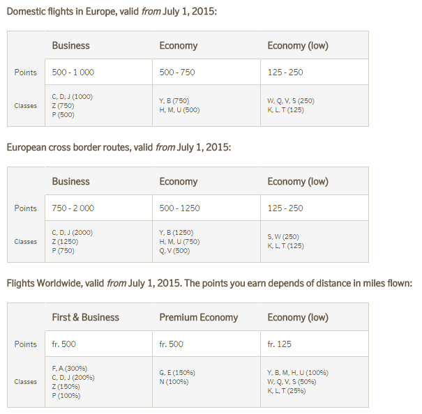 * Lufthansa - inom Tyskland och inom Europa fasta poäng/sträcka