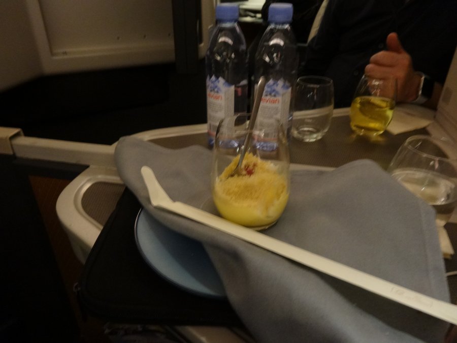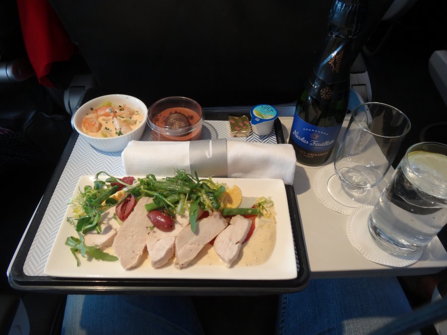 Biff till main, biffen var som det brukar på flyg, genomstekt, MEN väldigt mör