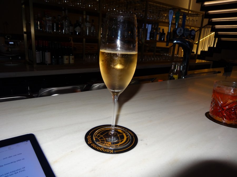 Väldigt trevlig First lounge, gillar mycket, bra utsikt och dessutom 2 olika champanger, den på bilden och Moet.