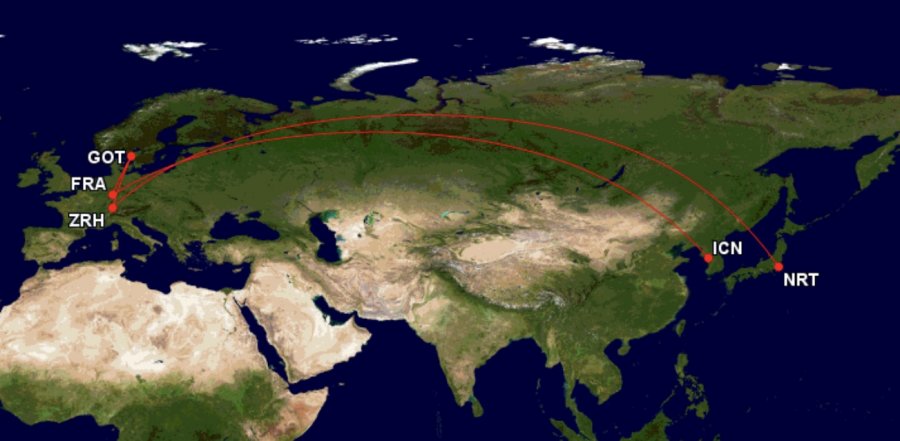 Tyvärr hittade de inga platser på direktflygen mellan arn-ist så det fick bli omvägar i Europa.