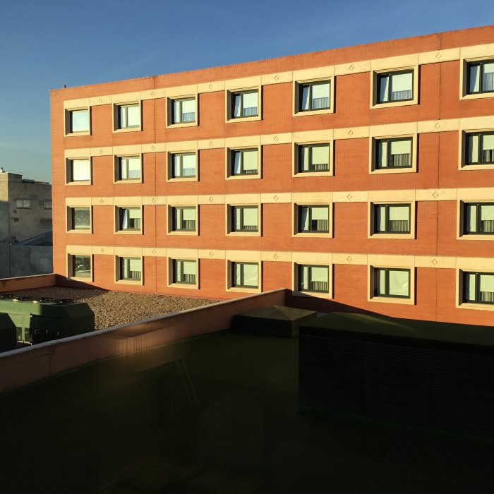 Utsikt från fjärde våningen doubletree by hilton amsterdam central (tror dom borde tvätta fönstren här).
