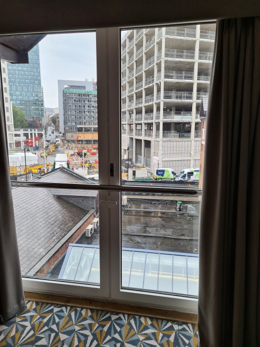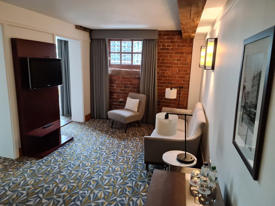 Vart är du? Manchester?Bytt till Marriott inne i stan igen, uppgraderad till svit igen. Utsikt mot en byggarbetsplats denna gången.