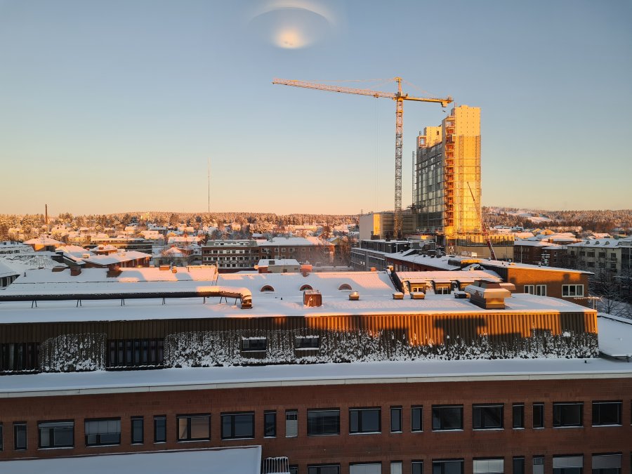 Det höga hus som syns i bakgrunden, vet du om det är det "berömda" höghuset i som bygg i trä trä, som skall bli kulturhus och värdens högsta byggnad i trä om jag inte minns fel.