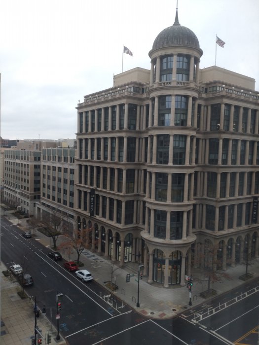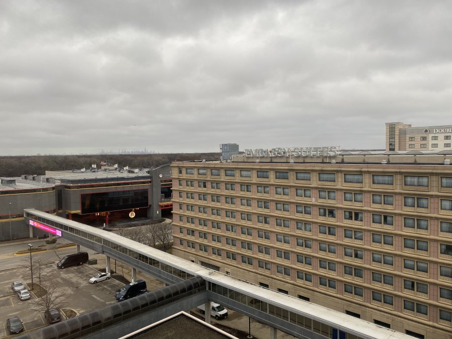 Newark Liberty airport Mariott, utsikt mot flygplatsen. Från terminal B tar det ca 5 min att gå, tyvärr fins ingen gångbana sista hundra metrarna, man tvingas gå över trafikerad väg och vägstaket. Frågade i hotellet varför det inte finns gångbana hela vägen och fick då svaret att det finns en gratis shuttle så det finns ingen anledning att gå. Så var det med det.