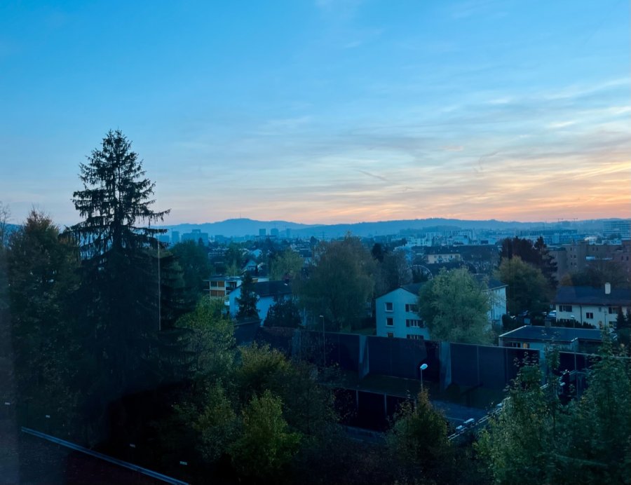 rsimon Medlem 30 Oktober 2022 #8 048 Hilton Zürich Airport, rum 352. Zürichs Uetliberg med radiomast i horisonten.