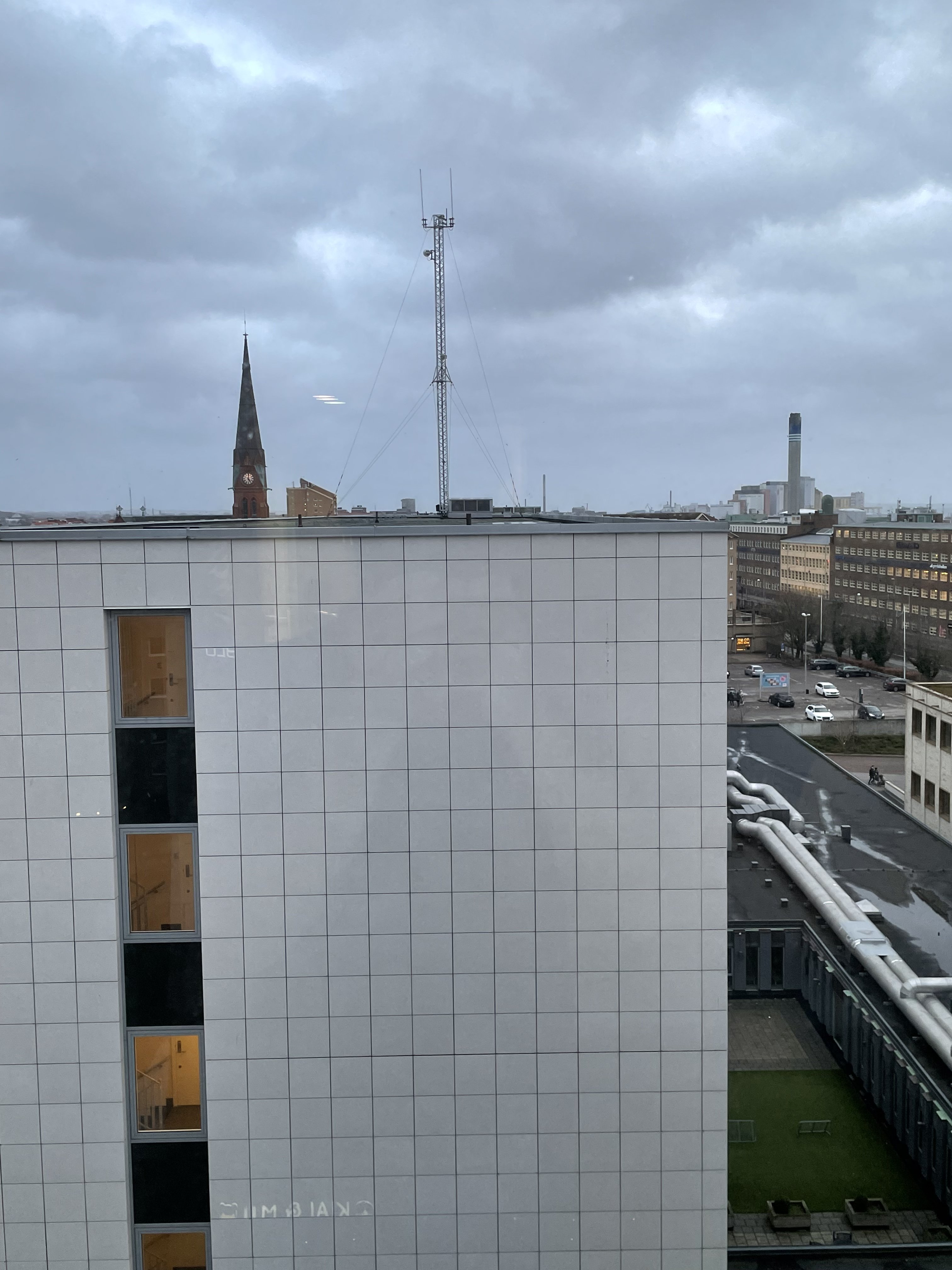 Vilket hav kan du se? Du har antingen riktigt bra syn eller också har du samma synfel som när du tittar på Man U.Åt andra hållet kan man skymta havet mellan två skrapor, syns dock inte ens på bild…