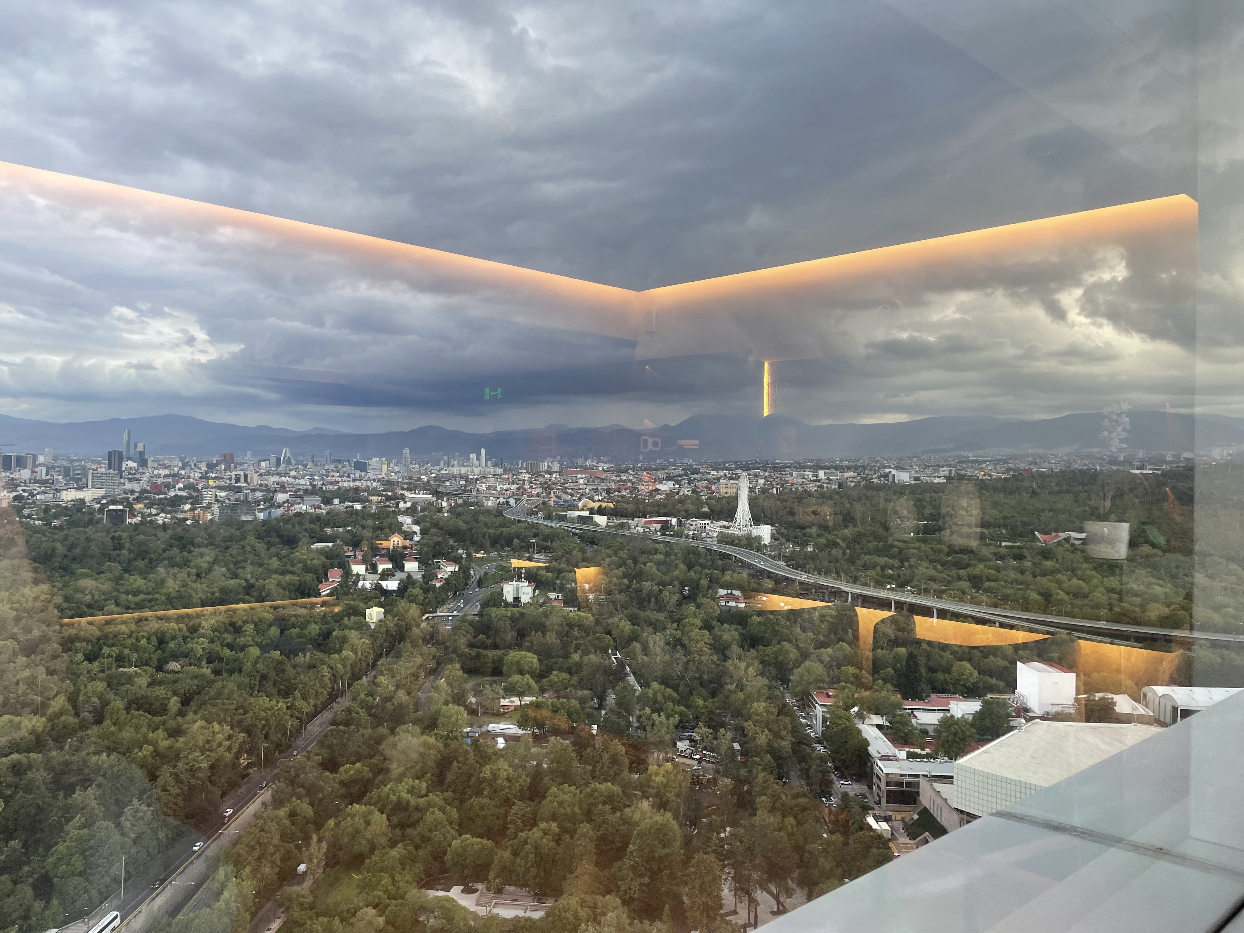 Nice! Vägg i vägg med mitt nyliga besök. Nästan lika bra utsikt som på InterContinentalFrån loungen på Hyatt Regency Mexico City. Då det börjar skymma gick det inte att ta ett foto utan reflexer.