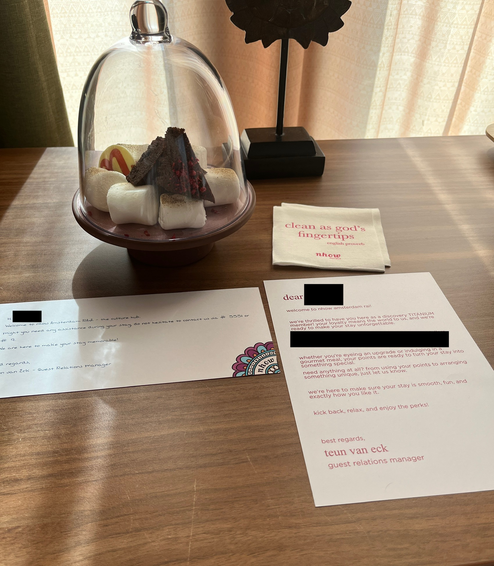 Välkomstgåvor: Ändrade mallen till plural. Flerdagsvistelse med påfyllning ett antal gånger, så lite off topic. Men kände mig välkomnad varje gång det kom in ett nytt lass. Toppade Intercontinental Amstel i Amsterdam med råge. Bilder med beskrivning i någorlunda kronologisk ordning.