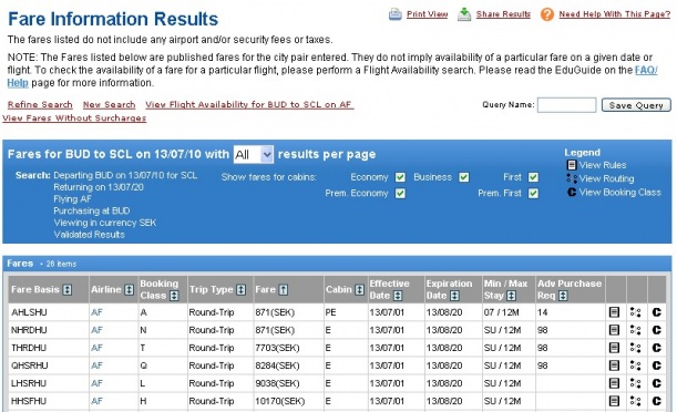 Air France Fara basis: AHLSHU gäller för avresa mellan 2013-JUL-01 och 2013-AUG-01 H för High Season L för Low Season