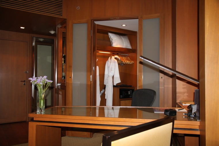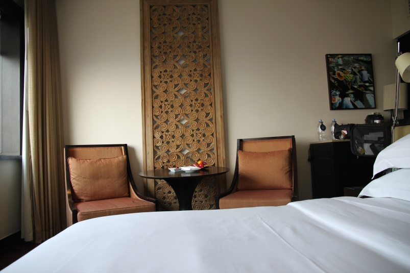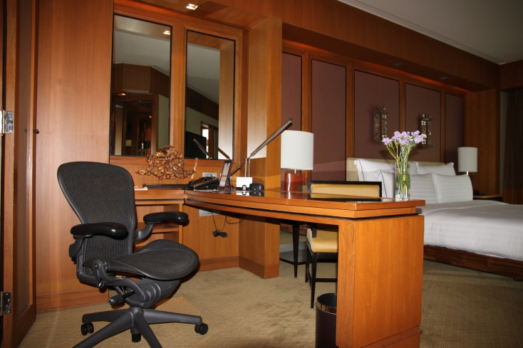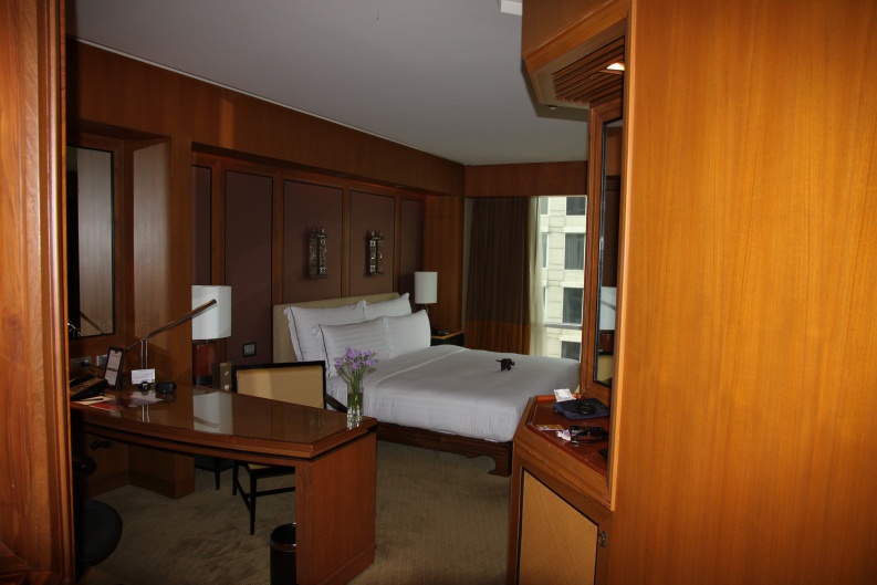 En snabb incheckning med välkomstbrev och förklaringar av uppgradering av rum, internet och de förmåner man numera förväntar sig vid varje vistelse gavs. Jag fick ett hörnrum på executive floor. Rummet var stort och utrymmesmässigt väldisponerat.
