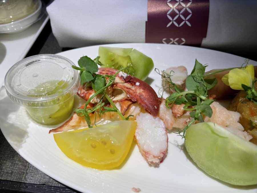 Beställde mini sliders hamburgare det var okej. Tips är att förhandsbeställa maten minst 24h innan flyget. Dom hade till och med tabasco i små flaskor. Drack gin tonic, åt lite popcorn, drack lite cognac och choklad. O så somnade jag i min qsuites hehe.