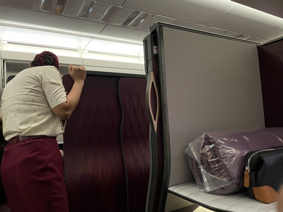 Qsuites flyget från Bangkok till Doha var en BOEING 777-300ER mer info för dom som är intresserad QR837 (QTR837) Qatar Airways Flight Tracking and History - FlightAware Min sittplats var 7A, vilket är 8A på seatguru av nån anledning som jag tolkar eftersom 7A inte finns på seatmaps på seatguru. Det är en bakvänt sits vilket jag tror är bättre eftersom du sitter intill fönstret. Riiiktigt bra flyg med qsuites! Kändes som att det var mitt eget rum. Känns privat med skjutdörrar då slipper man folk som går förbi osv. Att flyga bakvänt var inte alls dåligt som att åka buss eller tåg baklänges. Man märker inte ens av det. Tips är att be personalen göra turn down. Då bäddar dom qsuites i princip.