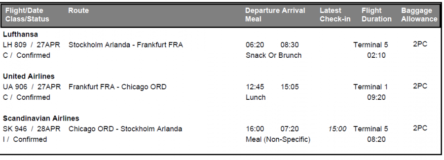 FIck en ny ETKT av SAS på mail, dagen före avresa. Confirmed står det mycket riktigt! I bokningsklass C dessutom vilket väl är en ganska hög/dyr klass? Någon som vet vad SAS kan ha betalat Lufthansa för denna biljett? Som sagt, väldigt fräckt av Lufthansa att skylla ifrån sig! De tog emot pengar från SAS även fast de säkert visste om att businesskabinen var full.