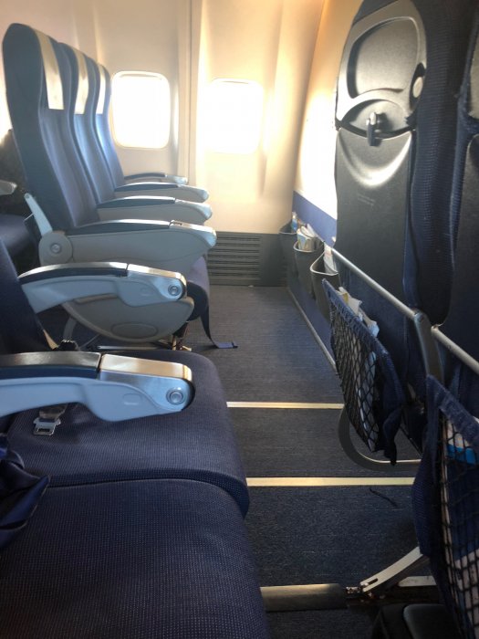 Vid 10:45 var det dags för boarding på flighten till London. Vår grupp bordar först och jag sitter på rad 2. Mittensätet har ersatts med en extra bricka att ställa saker på.