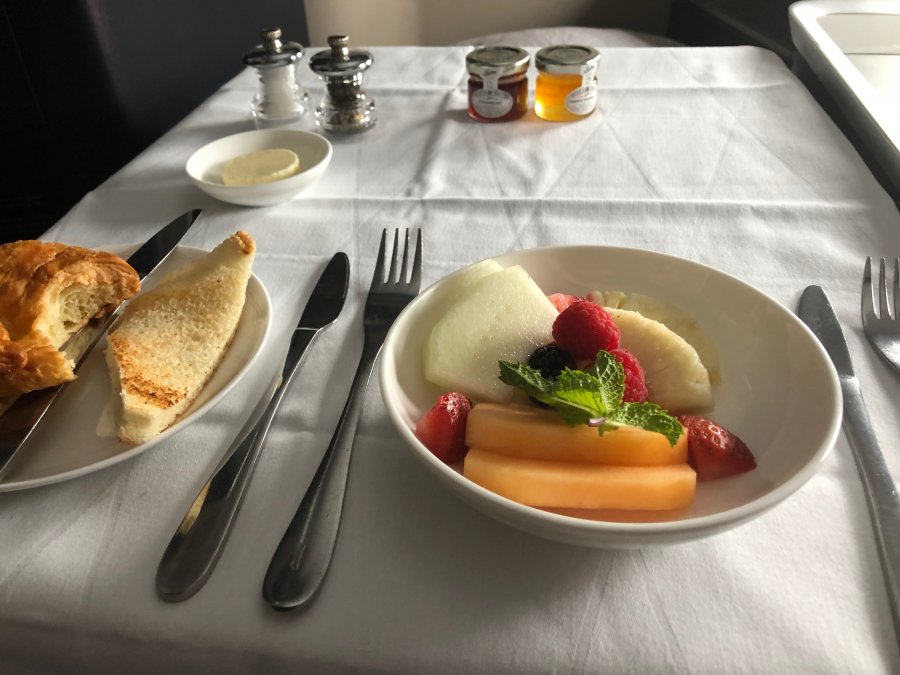Väl ombord var jag väldigt imponerad, bra service och väldigt trevlig personal. Kabinchefen kom runt och hälsade och bad om ursäkt för strulet vid boardingen. Champagne och den lilla väska, avböjde pyjamas eftersom jag inte tänkte sova så mycket på denna flight.