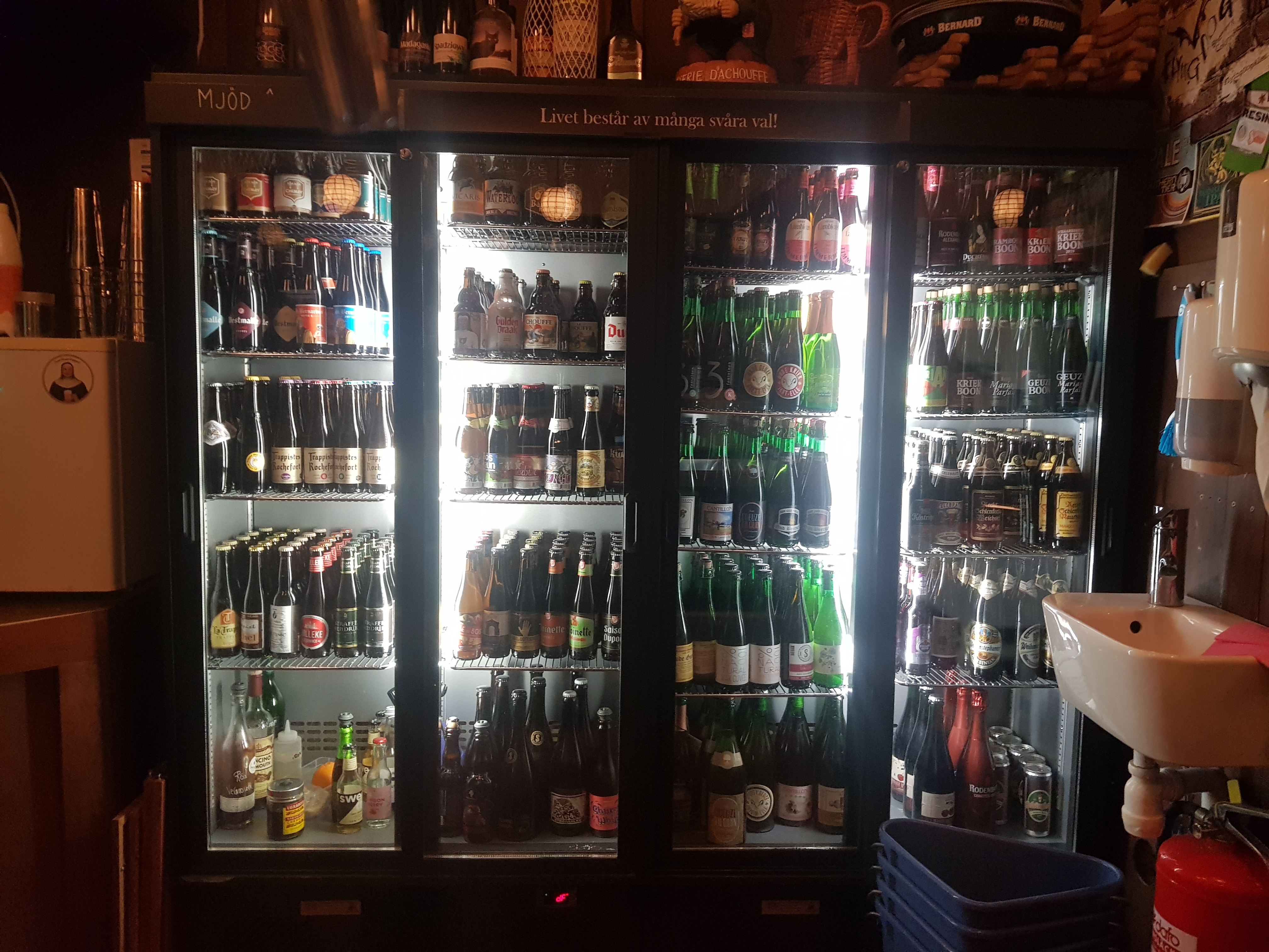 Men också två välfyllda kylskåp, ett med öl från Belgien och Tyskland.
