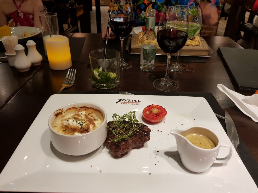 Det blev Prime steakhouse, drivs av en svensk. Otroligt gott! Det blev toast Skagen till förrätt och pepparstek respektive planka till varmrätt! Efterrätten, i form av glass bjöd restaurangen på tack vare att frugan fyllde år.