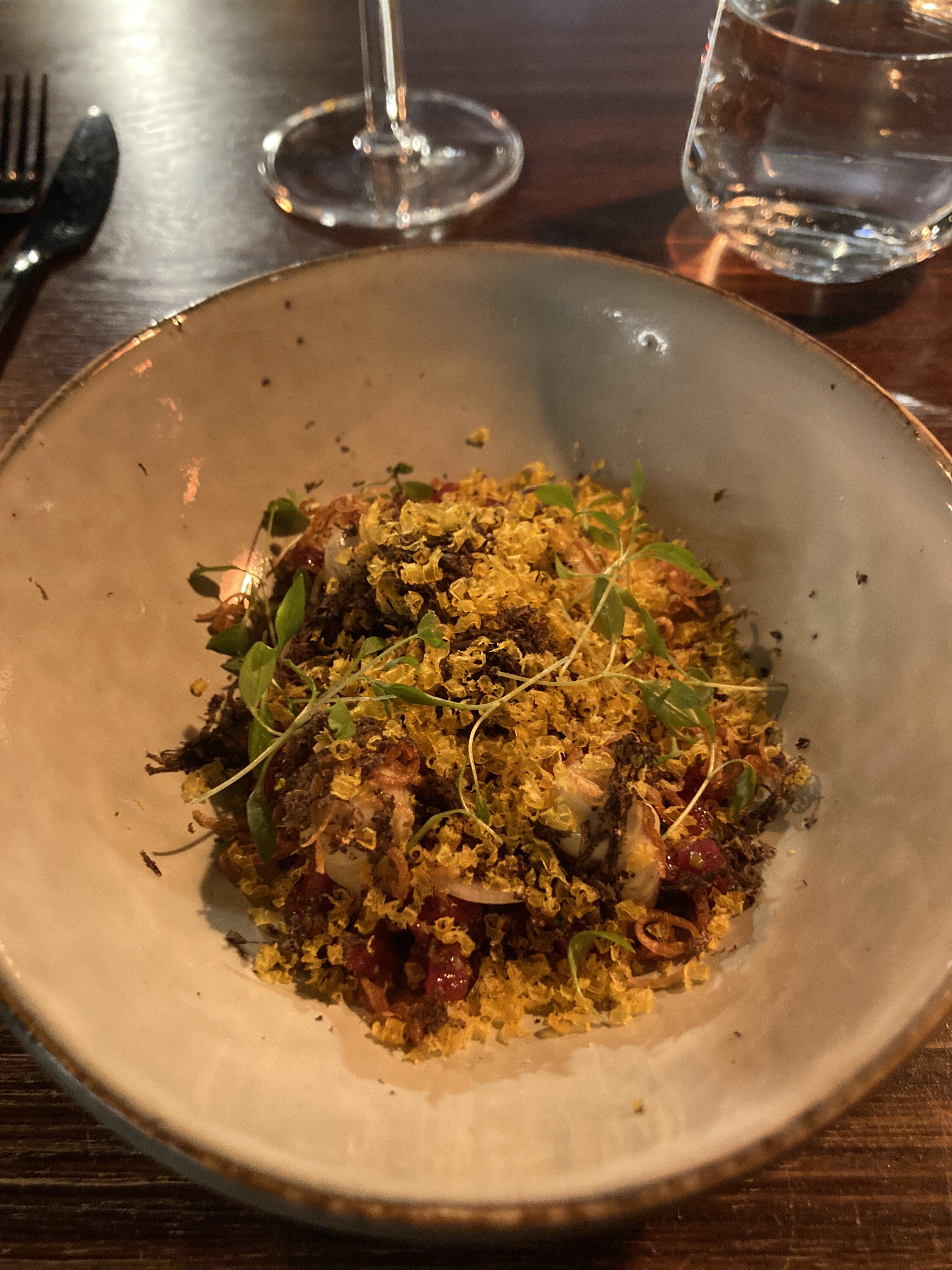 Jag har varit på alla hans tre restauranger (lokaler) i Västerås och nu är upplägget att man serveras på tre ställen och förflyttar sig i lokalen mellan snacks, huvudrätter samt efterrätter. Under serveringarna presenteras maten och tillagningsmetoden av Stefan eller hans assistent och även vinerna presenteras bra.