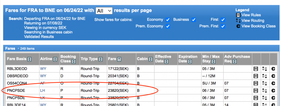 Samtidigt går det att HITTA vissa få datum på lufthansas hemsidaPrecis. Här är det som ligger i ExpertFlyer på sträckan DUB-BNE