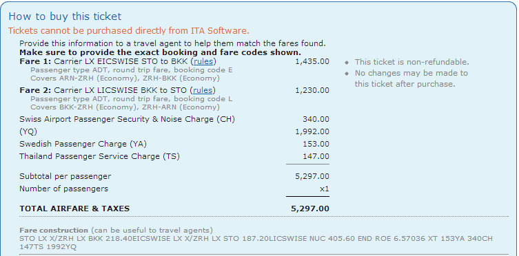 Däremot såg jag idag att Swiss har ute biljetter som passar mig, från Zurich så är det tydligen Thai Airways som jag har hört mycket gott om gällande deras Economy.