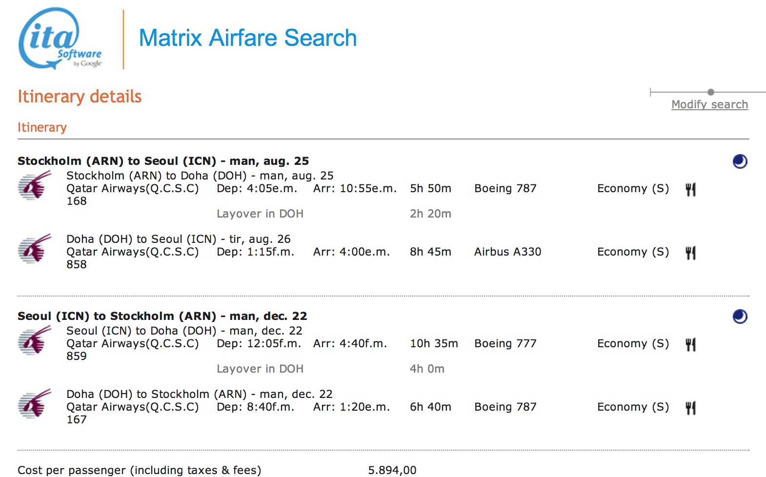 När vill/behöver du resa ut? Måste vara framme den 27:e Augusti så förmodligen den 26:e beroende på resetider.