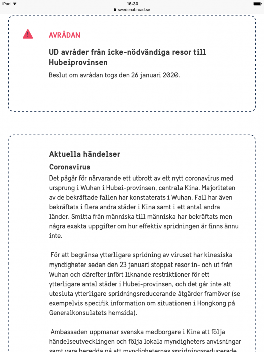 • Forty-one deaths have been reported to date (39 deaths in Hubei province, one death in Hebei province and one in Heilongjiang province).