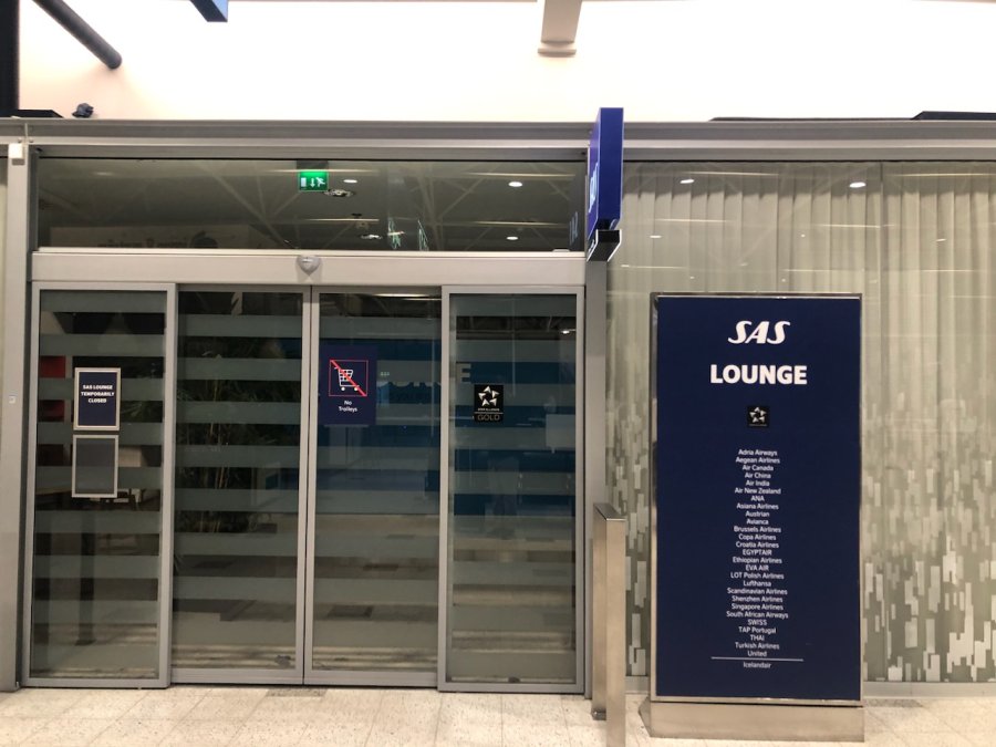 Hmm. Denna bilden tog jag för mindre än 3 veckor sedan, den 4:e november. Då satt det en SAS-skylt ovanför dörrarna och den sedvanliga guiden över vilka bolag som har tillgång.