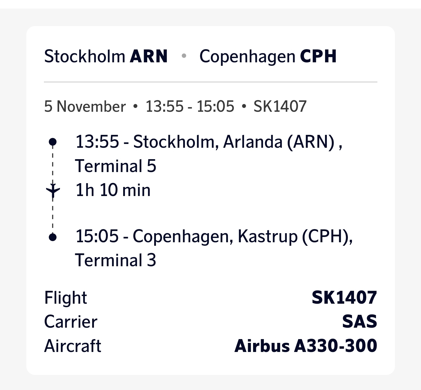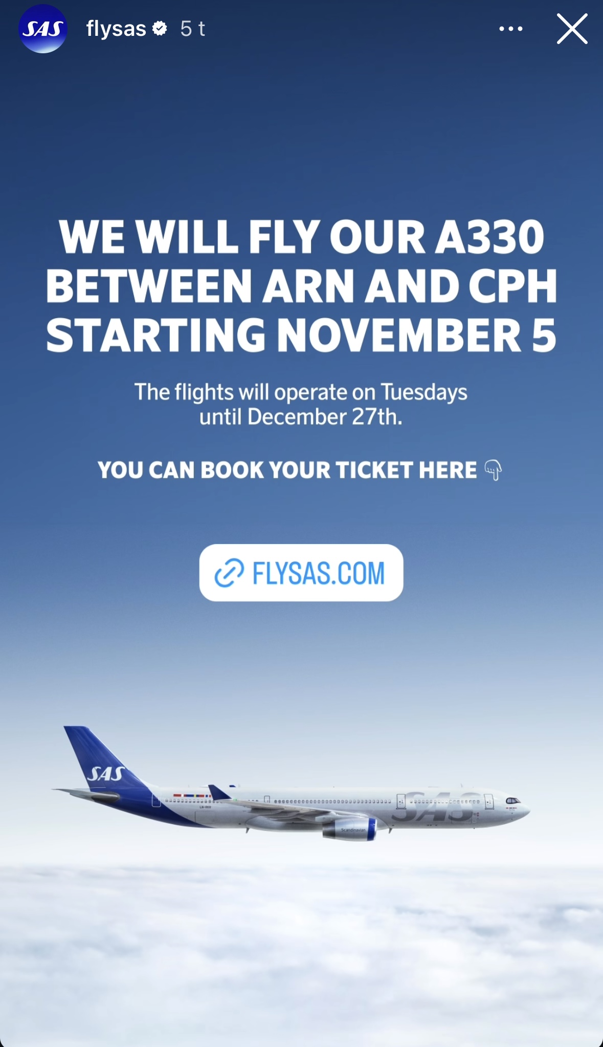 Du menar att man sätter in en A330 till Atlanta gör att man måste flyga 2tor ARN-CPH på tisdagar också med A330?Jag fick equipment change idag från A350 till A330 till Atlanta i december. Kan detta hänga ihop?