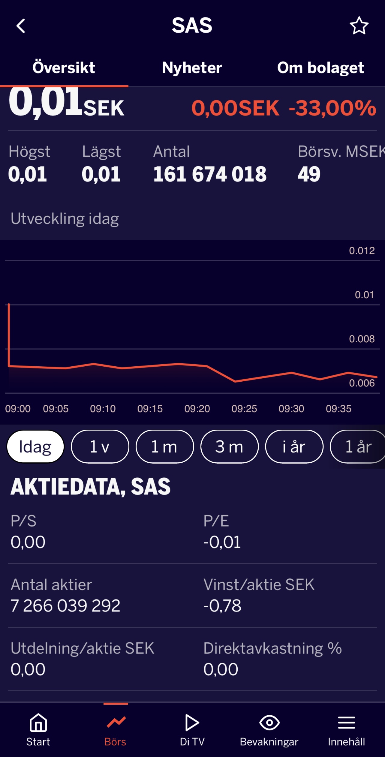 Börsen stänger 17:30, så man har 37 minuter på sig att sälja då. Personligen tycker jag att 0.36 öre är högt pris med tanke på att den är 0 i morgon.