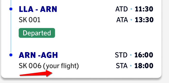 It would be nice if the different flights could be graphically distinguished somehow. It checked this yesterday and it was tricky to immediately see "which flight is mine?" (I was on SK1812).
