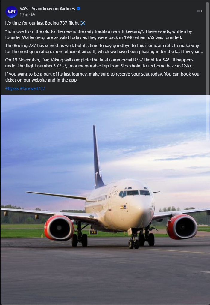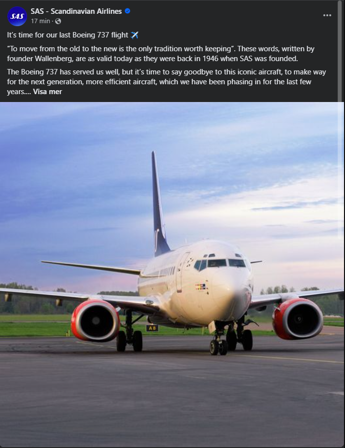 Dyra priser i GO och Plus... Det kostar 87.000 poäng enkel väg i plus... Gissar att det är många härifrån som bokat, samt mycket av SAS egen personal. Det är ju inte bara 737 som lämnar flottan, utan också Boeing som nyttjats som leverantör sedan 70-talet om jag inte tar fel.