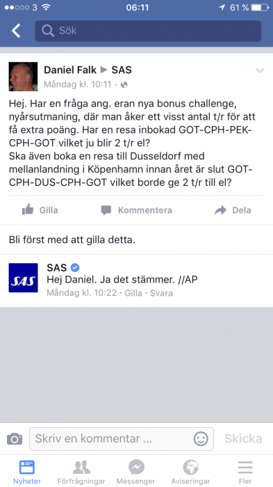 Precis, om man redan reser mycket får man ingen challange , att prata om "slump" är struntDet är väl inte så konstigt, du kommer inte boka något extra för denna challenge troligtvis, dvs de får ingen merförsäljning. Tanken med kampanjen lär ju vara att man ska boka mera, inte få poängen för redan planerade resor som inte genererar merförsäljning.