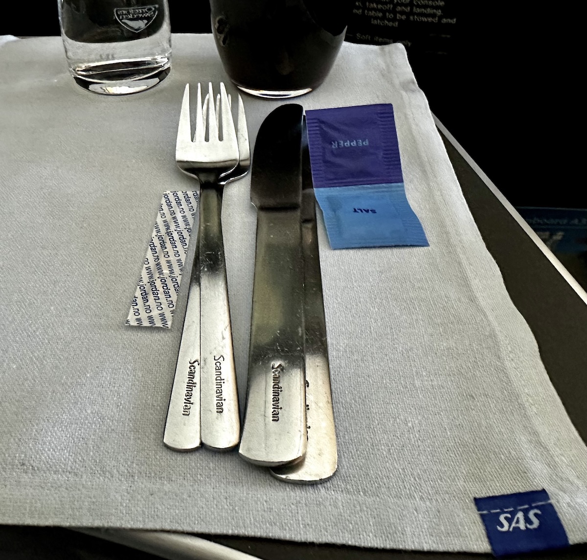 Det var extra kul precis när de började med det för då glömde de att man behövde få nya till ost/dessert... Nu är de bättre på att komma ihåg det.En besparing som jag inte lagt märke till tidigare är att man numera bara får 2 gafflar och 2 knivar levererade i servetten. Sparar förmodlingen in på vikten?