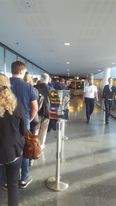 Ska vi skylla på Norwegian istället ( de använder också den)Är väl egentligen inte SAS fel men så här såg kön till ”Fast” Track ut för en stund sedan på ARN T4, kö till rulltrappan...