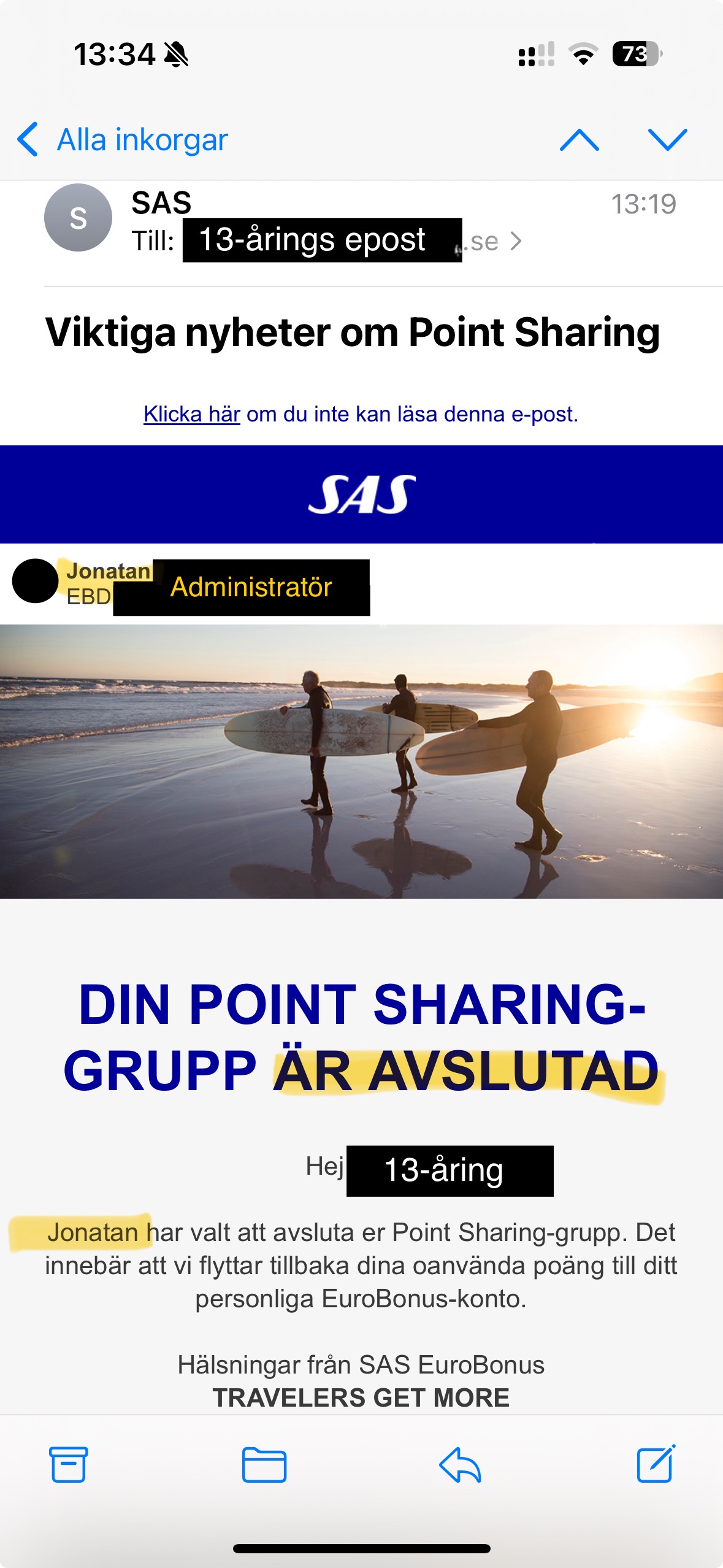 Sedan debaclet med att "byte av avgång" inte fungerar i appen. Enligt uppgift ska det bara fixat, men jag fick inte chans att testa. Istället gjorde service desk bytet med följd att benet helt försvann från reservationen och nu ser jag att jag inte heller fått poäng för flyget.