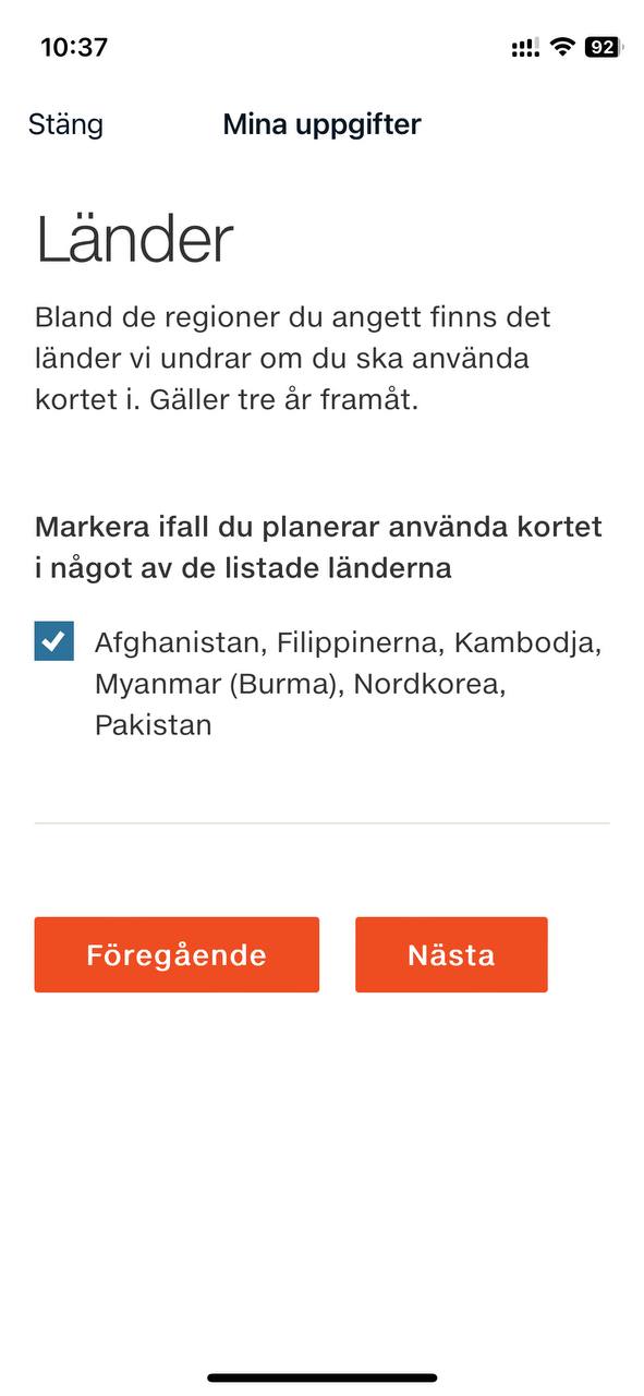 Jag misstänker här att om man svarar Asien på vart man tänkt åka vill SEB veta att man inte åker till högriskländer.