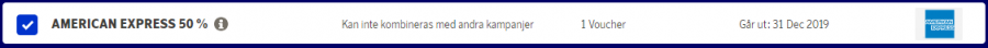 SAS EuroBonus AMEX 2-4-1 (2 för 1) voucher tråd (2019)