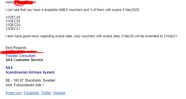 Bättre sent än aldrig om informationen stämmer. Jag hann tyvärr nyss säga upp mitt premium men har ev. gamla nu då långt fram i 2021. God tid att eventuellt jobba in nya också om resandet ser bättre ut.