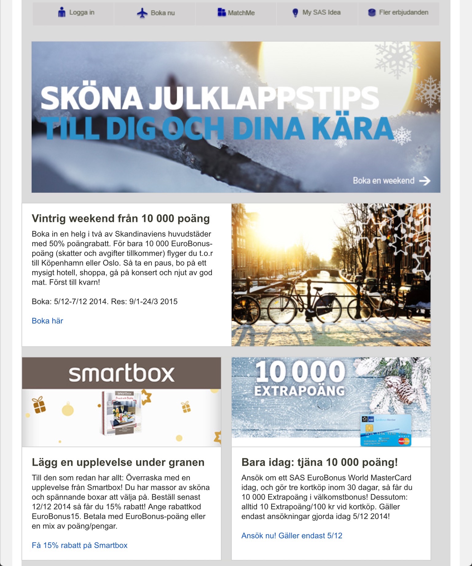 Beställ senast 12/12 2014 så får du 15% rabatt. Ange rabattkod EuroBonus15. Betala med EuroBonus-poäng eller en mix av poäng/pengar.