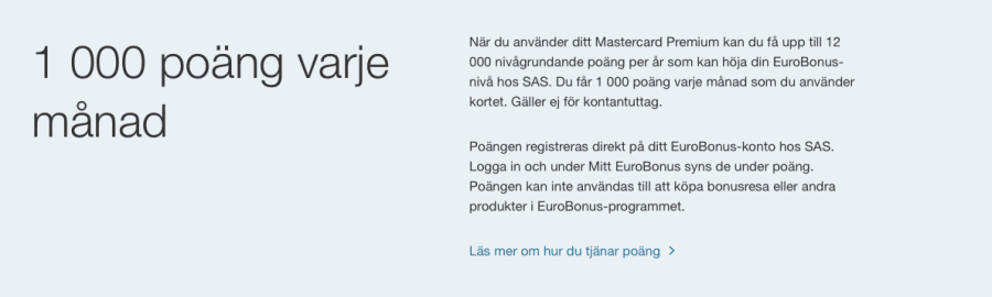 Något otydlig info på SEB:s sida m.a.o. Jag hade mer än gärna fått poäng på kontantuttag... Men det hade varit för bra för att vara santDu har rätt. Jag läste högre upp på samma sida och där står inget om begränsningarna gällande uttag:
