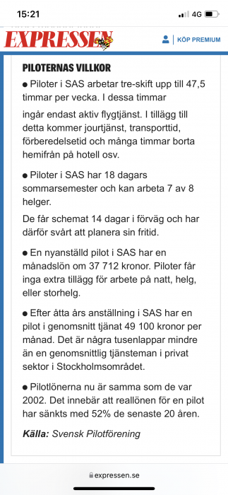 1. Om de hävdar att piloternas reallön gått ner med 52% och de landar på 49000 efter 8 år så måste de haft en sjuhelvetes lön för 20 år sedan.