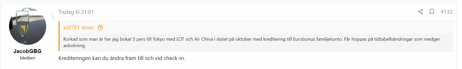 Efter 31 augusti går det inte att få poäng till eurobonus från LOT och Air China, eftersom SAS lämnar Star Alliance 31 Augusti 2024, så det lär inte hjälpa hur många gånger det går att ändra ff program i appen om xz0781 vill ha eurobonus-poäng för sin långresa till asien i oktober.