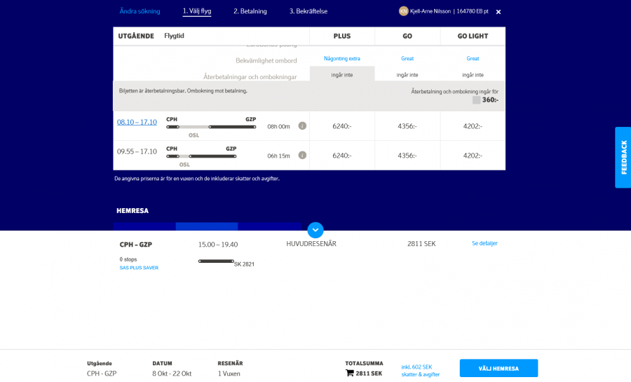 Adressen är i alla händelser Billiga flygbiljetter och flygresor – sök och boka flyg - SAS