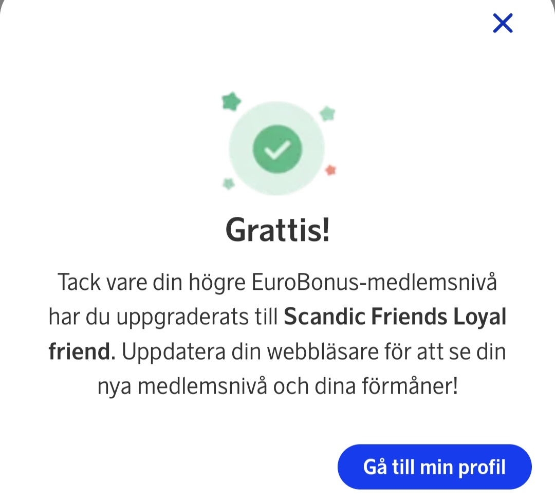 Som Scandic Loyal Friend blir du uppgraderad till EuroBonus Guld: