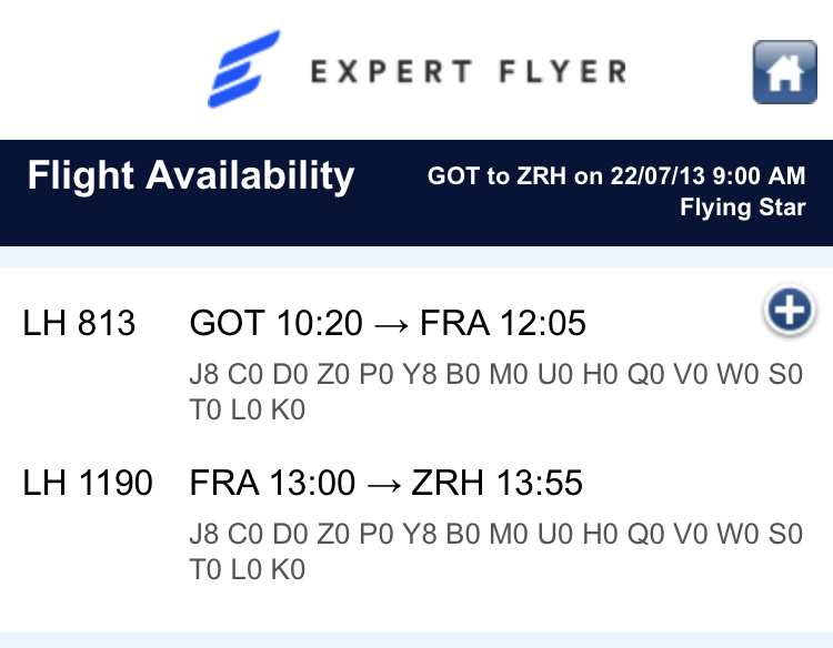 Aha, det syntes ej när jag körde via Google Flights. Då är LX-flighten körd då vår nästa flight med AC går 09:40 den 14/7.